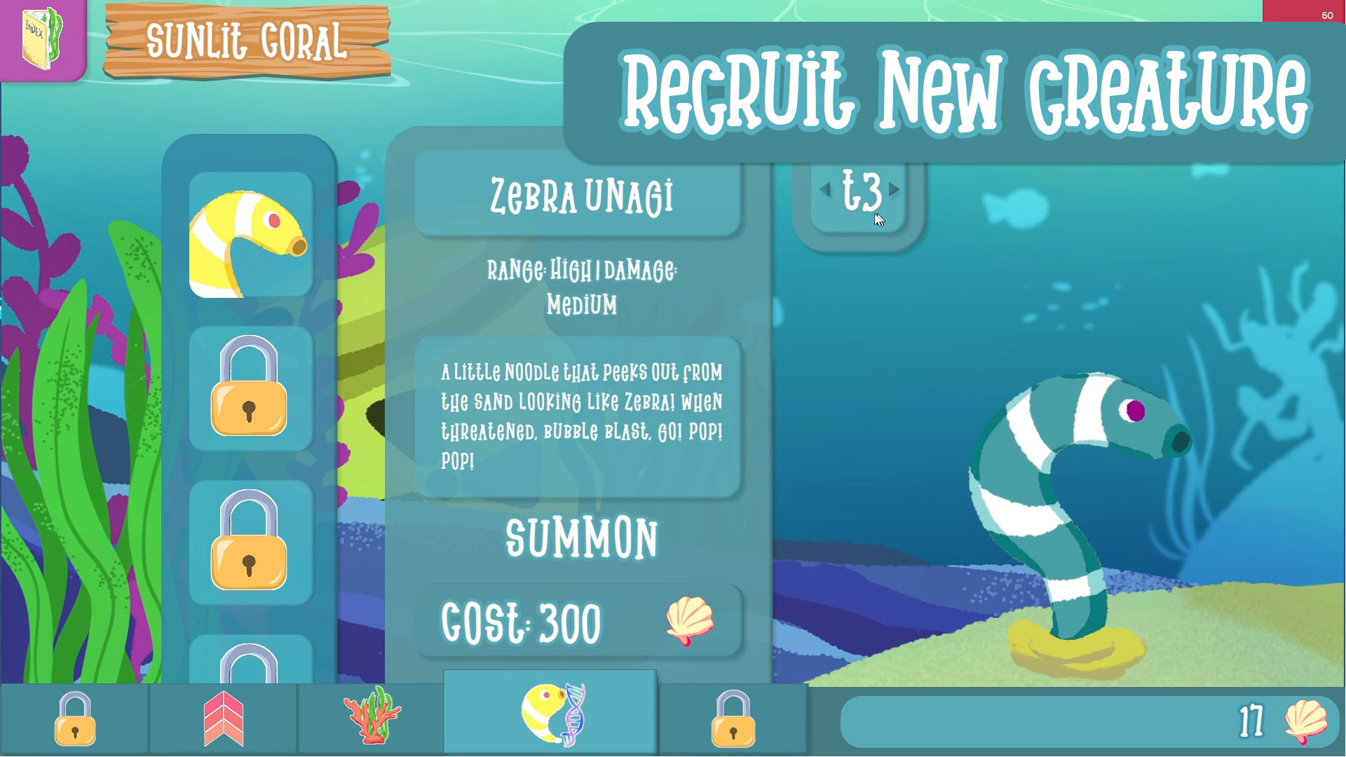 Now, it’s up to an unlikely team of heroes. Join Unagi and summon a quirky cast of aquatic allies to fight back! Do you have the strategy to defend your home, clear the alien menace, and save the sea?